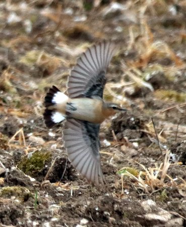 3 Wheatear, 3 Willow Warbler, 2 Whitethroat, 7 Stonechat, 6 Blackcap, 2 Siskin, 5 Chiffchaff, 2 Raven - SPTA east - Brian & Brenda Heath
