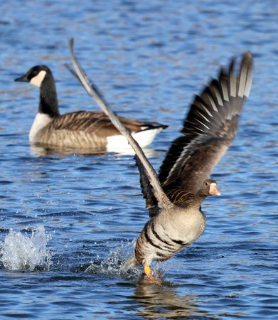 RING-NECLED DUCK, 3 RUSSIAN WHITE-FRONTED GOOSE - Langford Lakes - Mike Smith
