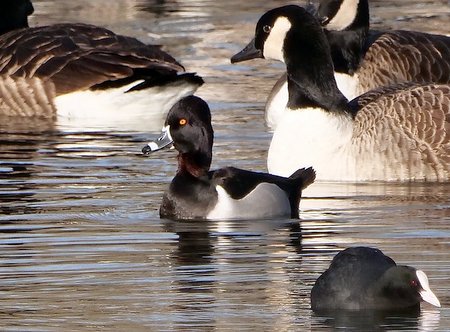 RING-NECKED DUCK (male), 3 RUSSIAN WHITE-FRONTED GOOSE - Langford Lakes