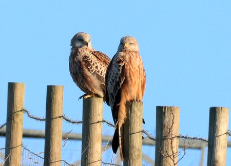 HEN HARRIER (ringtail), MERLIN, 14 Red Kite, 5 Stonechat, 150 Linnet, 430 Corn Bunting, Reed Bunting, 18 Lapwing, 200 Fieldfare, 50 Redwing, Raven - SPTA centre - Rich Prior, Jon Lee