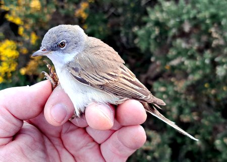 Grasshopper Warbler, Sedge Warbler, 2 Lesser Whitethroat, 40 Whitethroat, 30 Blackcap, 7 Garden Warbler, 3 Willow Warbler 15 Chiffchaff, 2 Raven - SPTA centre - Phil & Graham Deacon